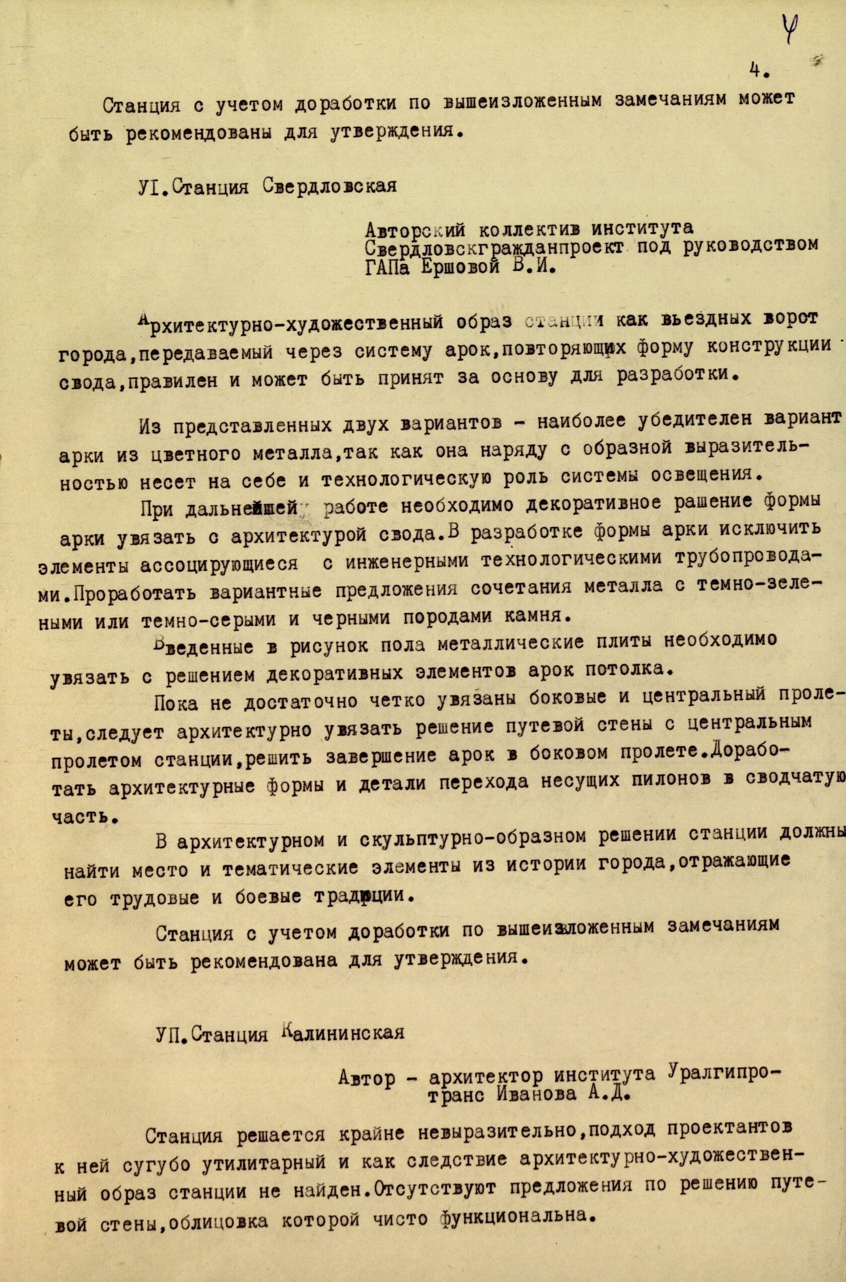 Из представленных на конкурсе шести станций интерьеры трех: Уральская, Уралмаш и Проспект Космонавтов, разработанных авторским коллективом Уралгипротранса под руководством С.У. Зиганшина были признаны лучшими.