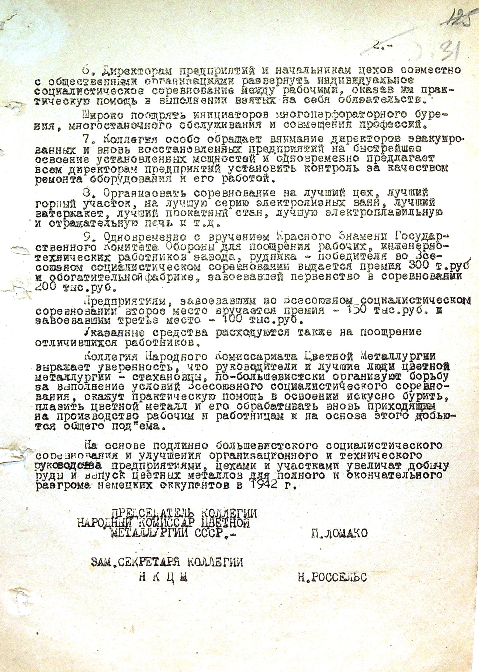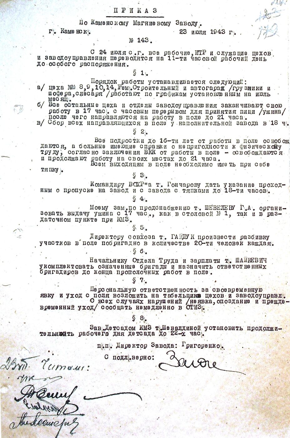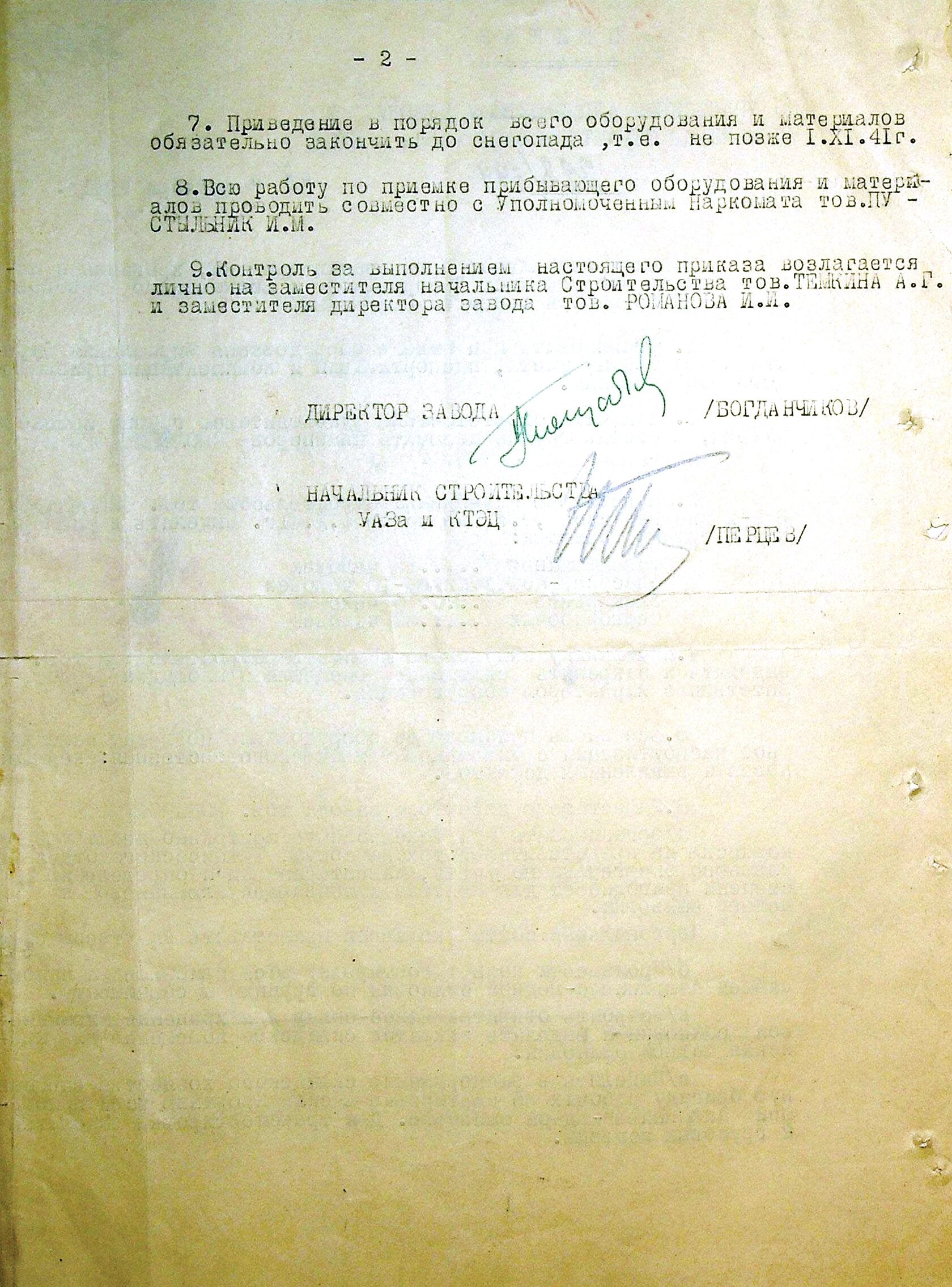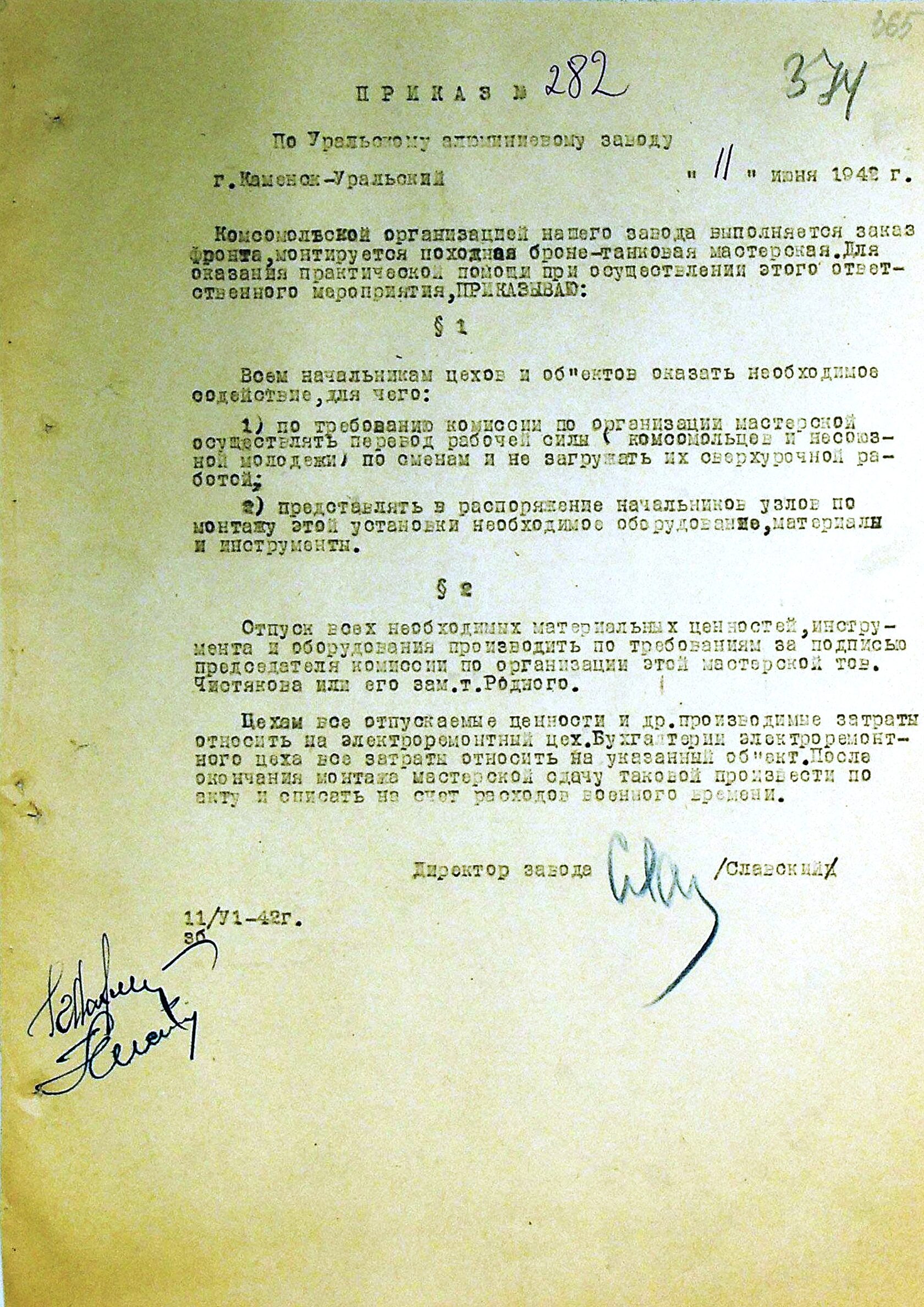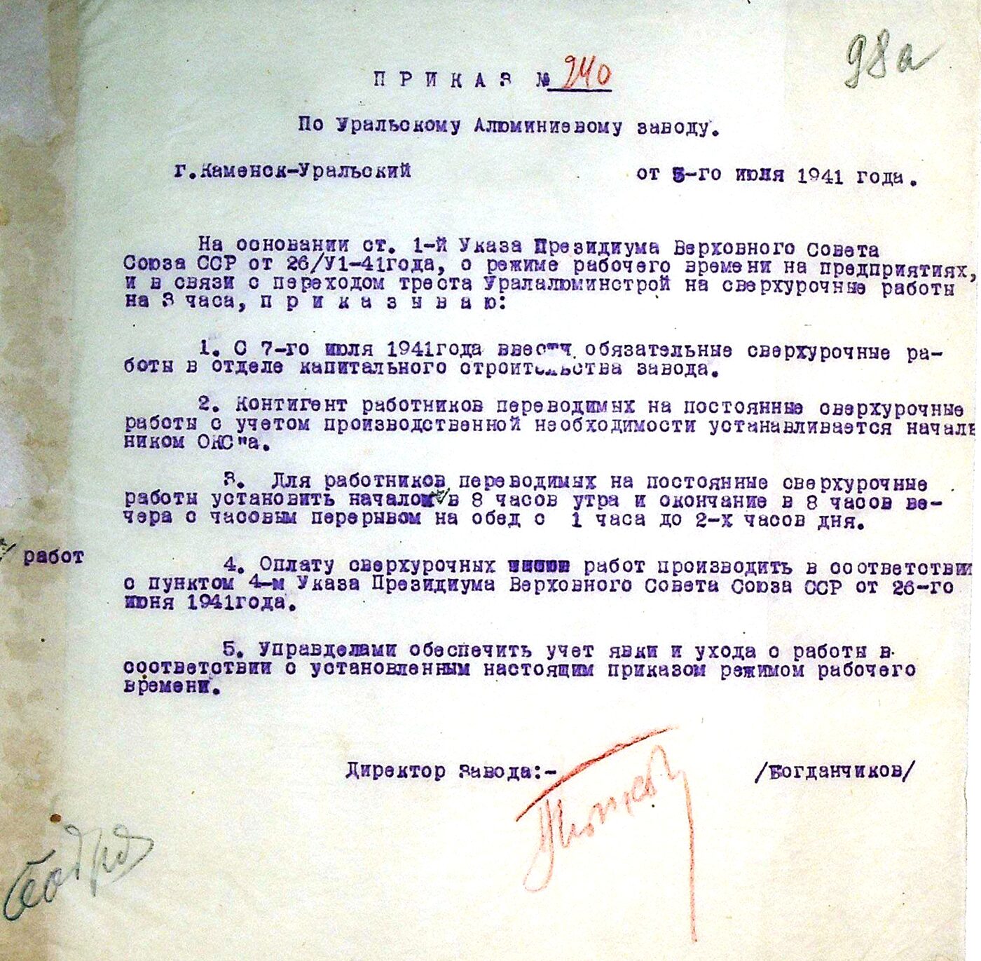 Приказ № 240 от 05.07.1941 по Уральскому алюминиевому заводу