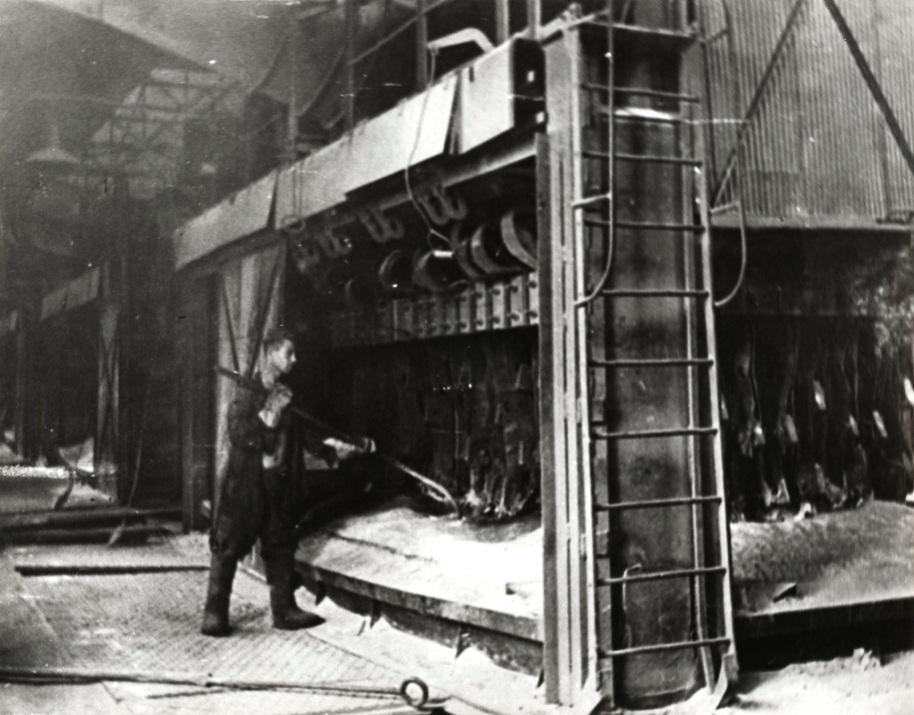 "Завод № 268. В кузнечном цехе закалка штамповок лопастей боевых самолетов".