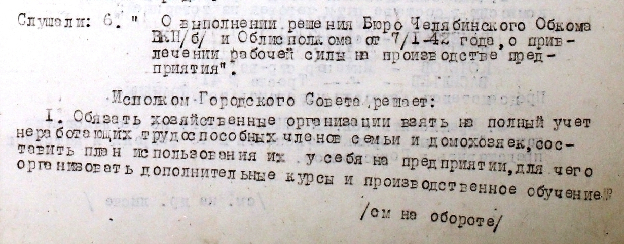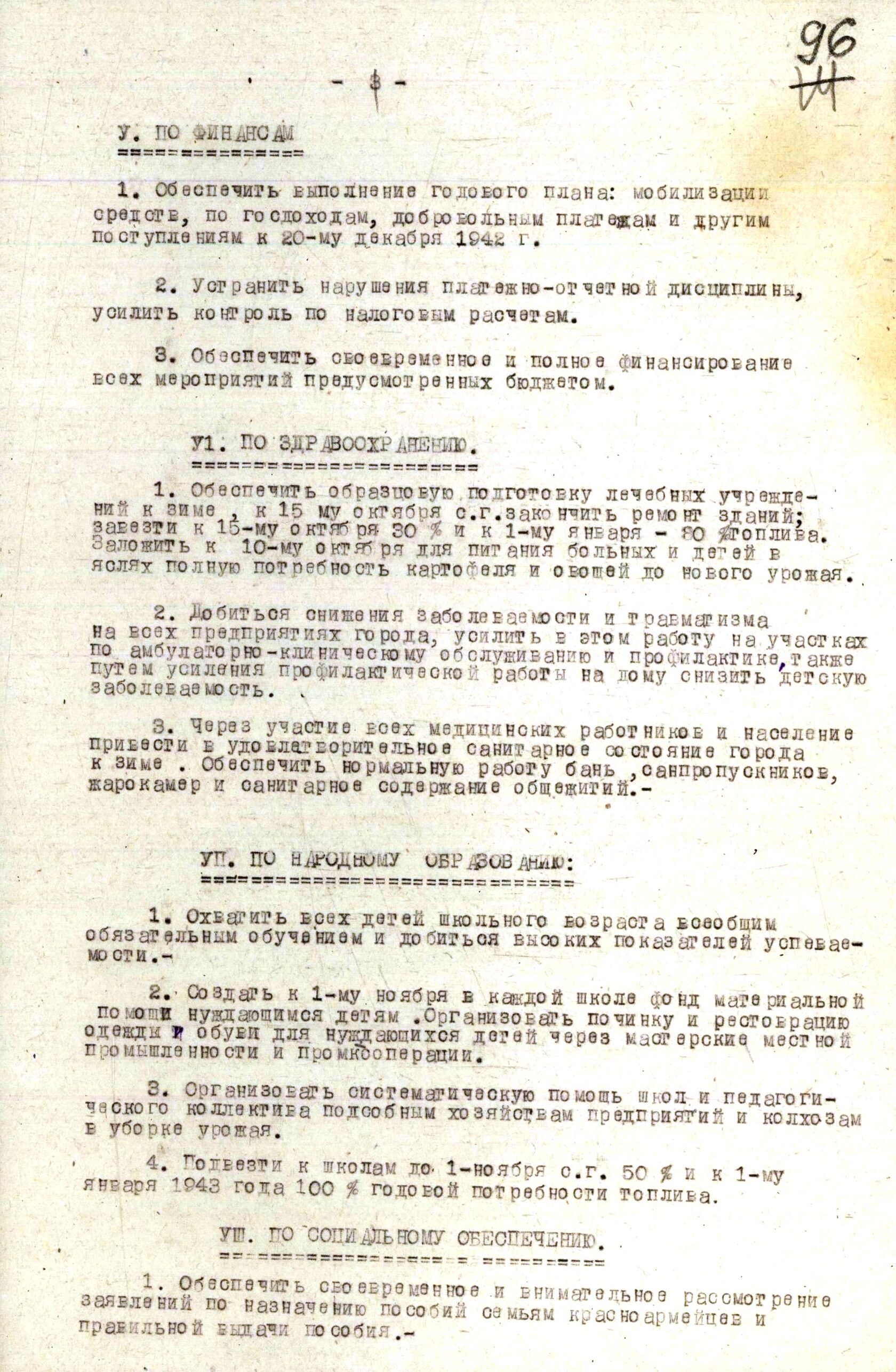 "Работа городского Совета и его исполкома за 1941 год особенно во второй половине года была подчинена интересам фронта, выполнению задач организации разгрома врага.