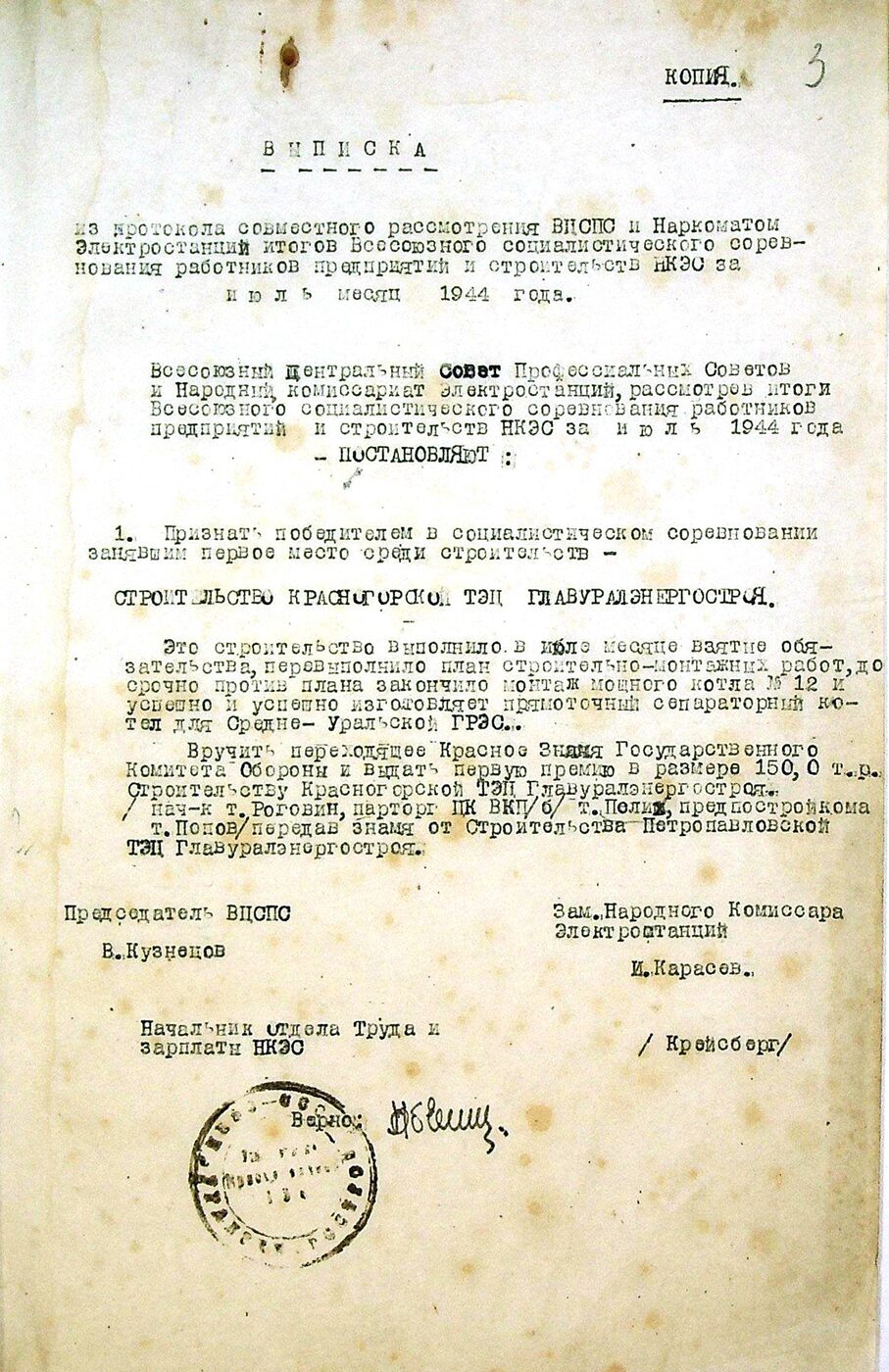 и Наркоматом электростанций итогов Всесоюзного социалистического соревнования работников предприятий