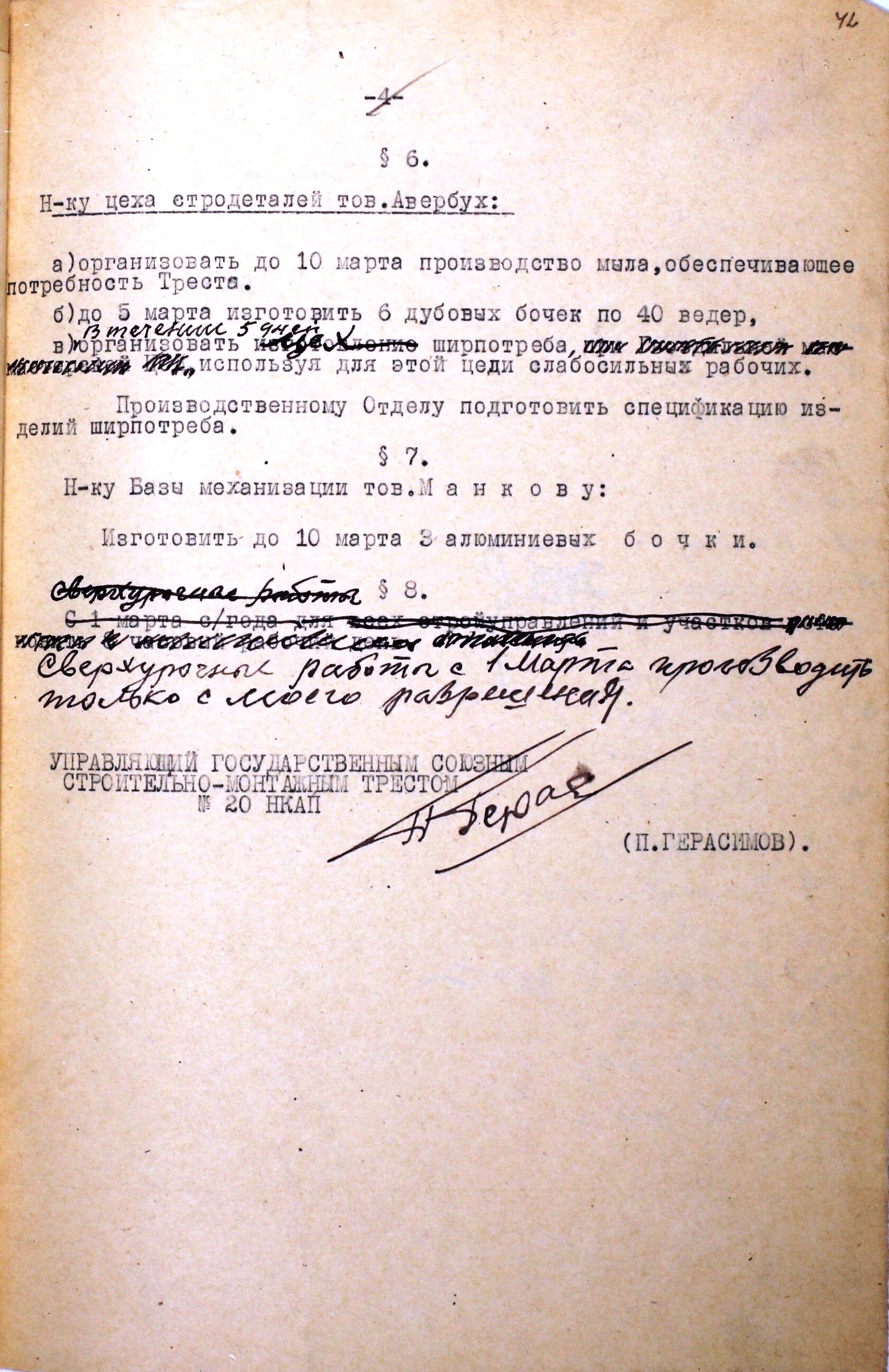 Строительный трест № 20 НКАП награждён орденом Трудового Красного Знамени.