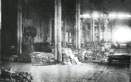 "Завод № 286. Стержневой участок. Линия раздачи готовой стержневой смеси к рабочим местам". [1941-1945 гг.] Из фондов Музея трудовой славы АО "КУЛЗ".