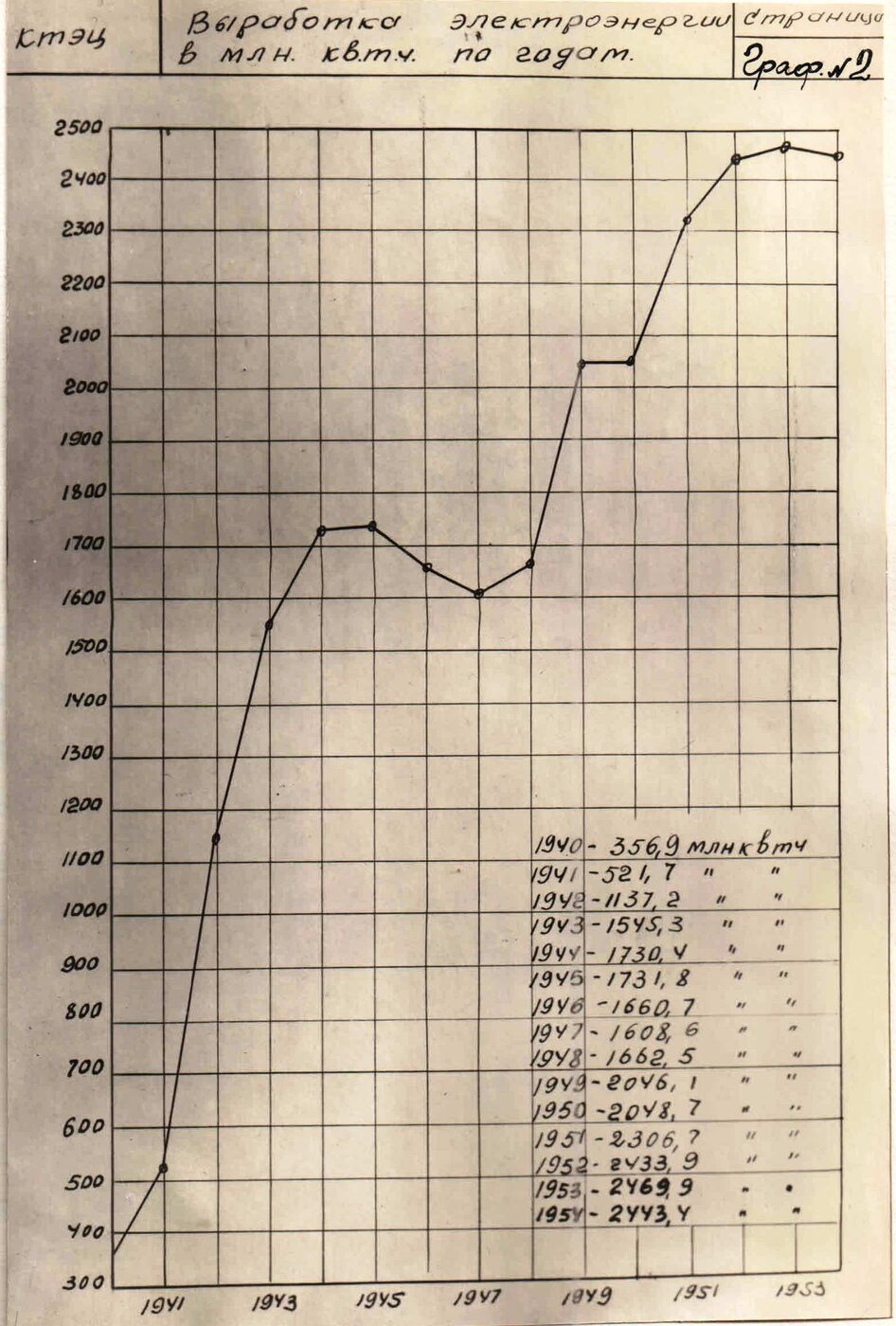 Выработка электроэнергии Красногорской ТЭЦ по годам. 1954 г.
