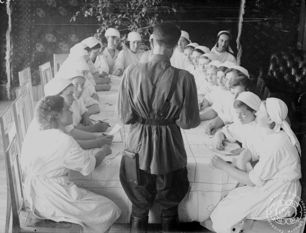Госпиталь № 414. Беседа главного врача с медицинскими сестрами.