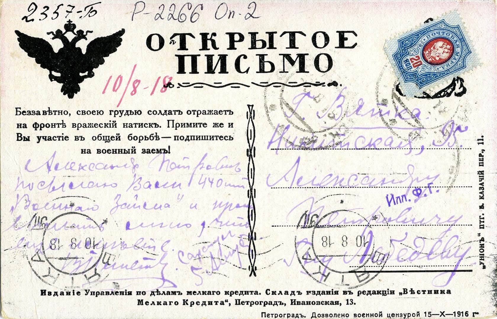 Почтовая карточка Никольской общины Российского отделения Красного Креста.