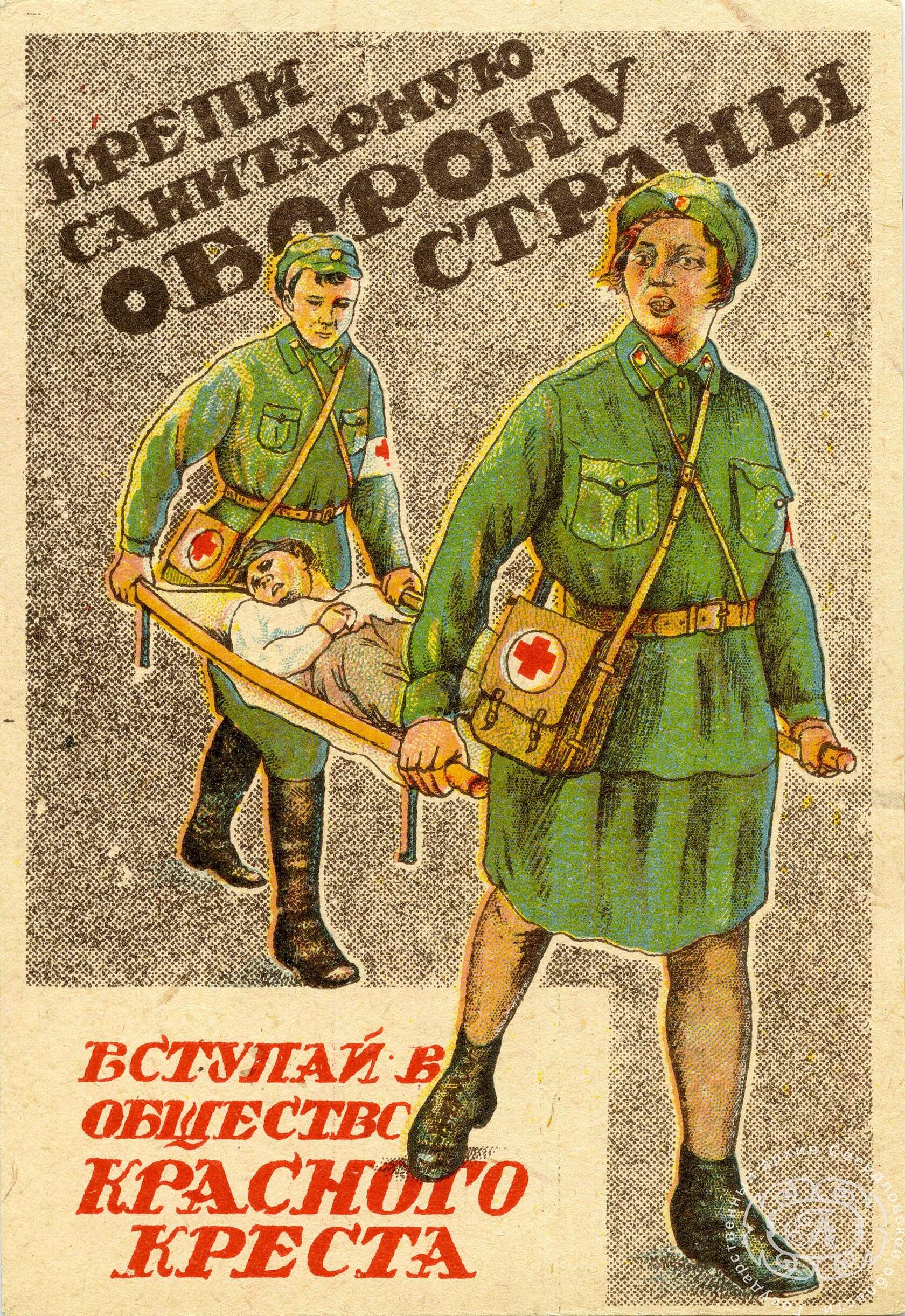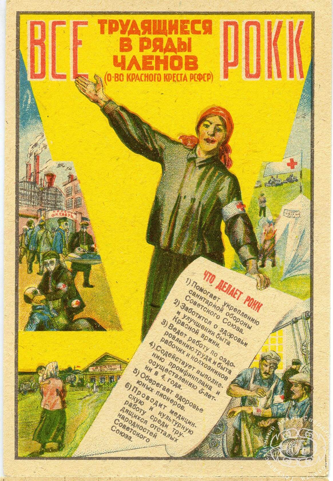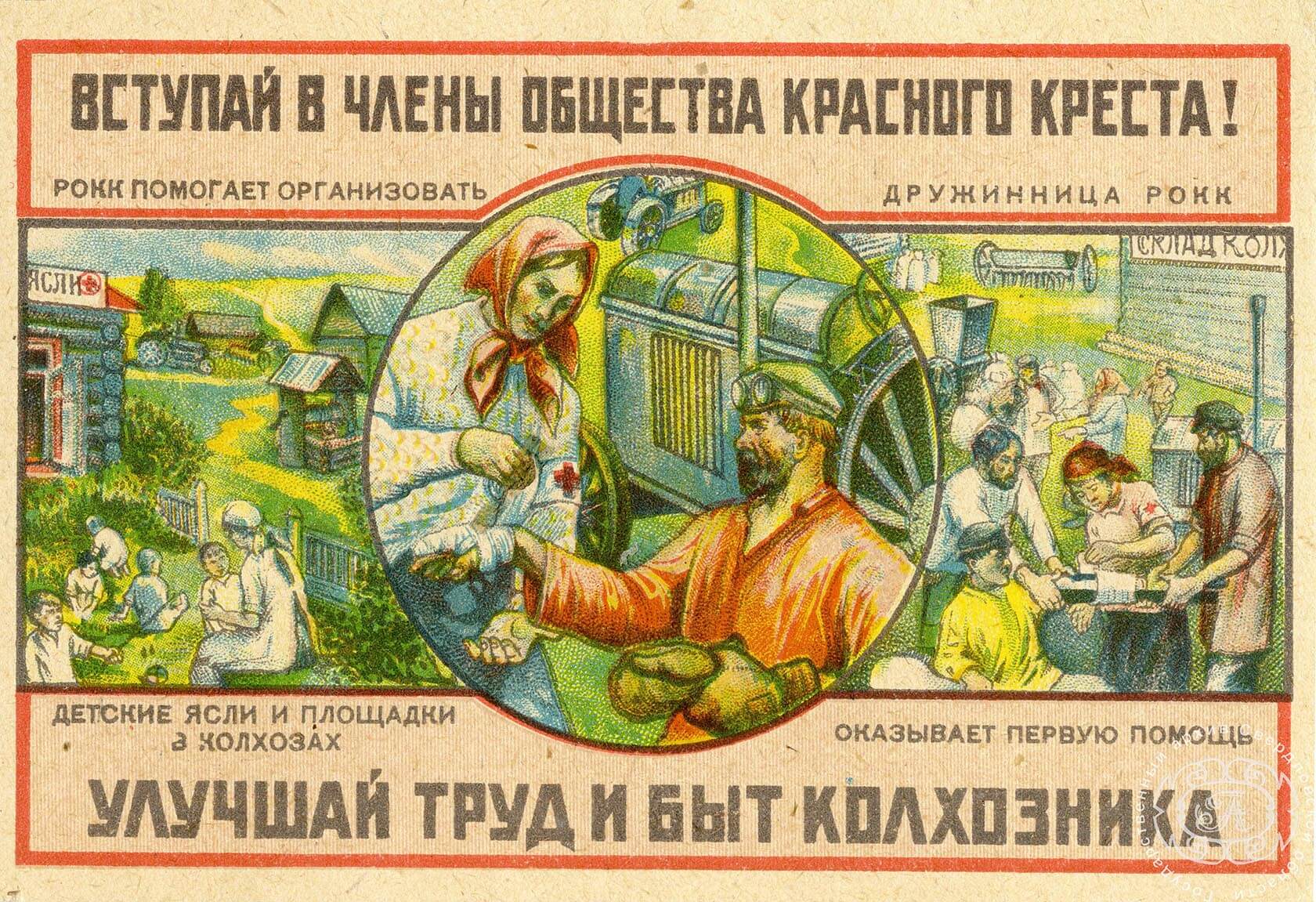 Почтовая открытка Фонда Военно-Санитарной обороны «Вступай в члены общества Красного Креста! Улучшай труд и быт колхозников!».